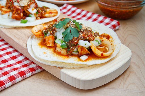 Sweet Potato and Black Bean Tacos with Swiss Chard Pesto
