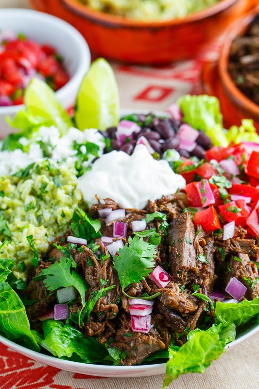 Barbacoa and Avocado Cilantro Lime Rice Burrito Salad Bowl