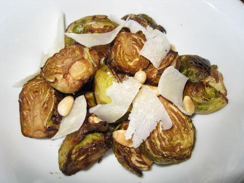 Roasted Brussels Sprouts with Balsamic Vinegar, Pine Nuts and Parmigiano Reggiano