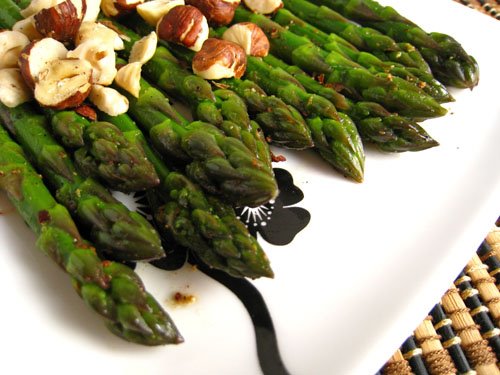 Asparagus with Garam Masala, Butter and Toasted Hazelnuts