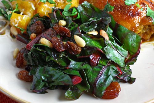 Chard Sauteed with Raisins and Pine Nuts