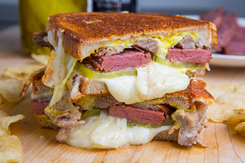 Corned Beef Cuban Grilled Cheese Sandwich