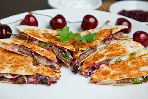 Duck Quesadillas with Chipotle Cherry Salsa and Goat Cheese