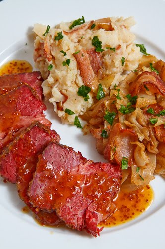 Corned Beef Glazed in Honey and Mustard Dinner with Cabbage