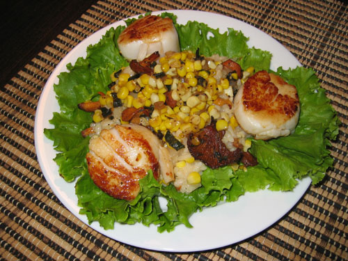 Chanterelle and Corn Risotto with Scallops