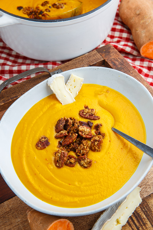 Creamy Brie Sweet Potato Pecan Pie Soup